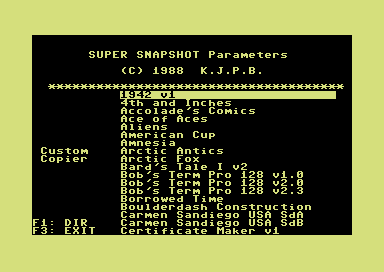 The last disk was the Slideshow disk, I’ve never used it and never had a need for it, BUT here it is. So that’s it ALL Three disk for Snapshot V4. I think that if you do not have these disk you are really not missing out much, except for the Turbo 25 programs, you might be able to find them elsewhere. As for the parameters, nothing new here!
